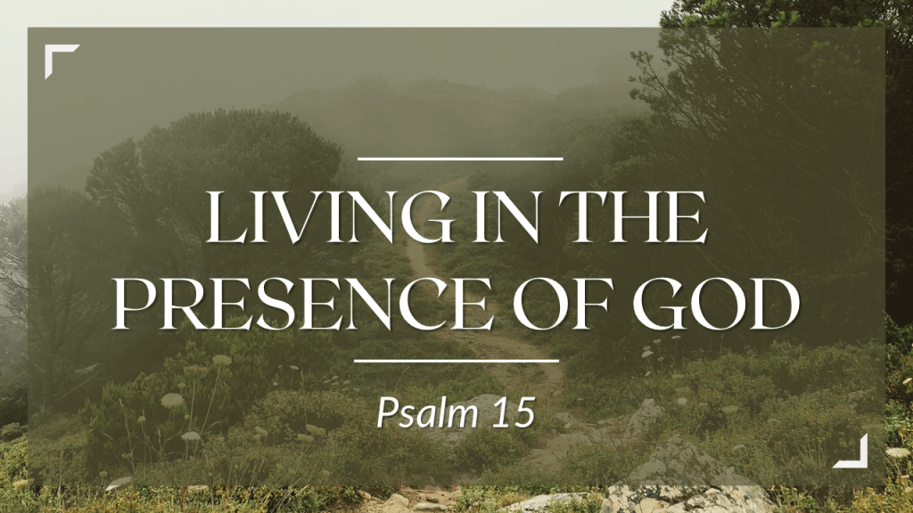 David both asks, and answers, the question of all ages. Who shall live in the presence of God? The answer is clear and is rephrased by Jesus in His parable of the last judgment. So, who? Those who walk blamelessly, or above reproach. Those whose works are righteous in the eyes of God irregardless of what others desire. Those who speak truth from their heart, for that which comes from the mouth is an indication of the state of ones heart. Those who do not have deceitful tongues. Those who do no evil to their neighbor or finds fault with those near to him on her. Those who disdain evil in their presence but hold honor towards those who fear the Lord. Those who do not break their oaths with others or takes advantage of those that they lend to. These who do not take bribes against the innocent. These words stand as an indictment against so many in our society today who proclaim to be Christians and yet do not do the works of Christ. Lord, have mercy! Lord, have mercy! Lord, have mercy!