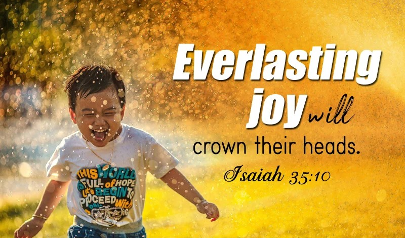 and those gathered by the Lord shall return and come to Zion with gladness, and with everlasting gladness over their head. For praise and exceeding joy will be on their head, and gladness shall possess them. Pain, sorrow, and sighing fled away.