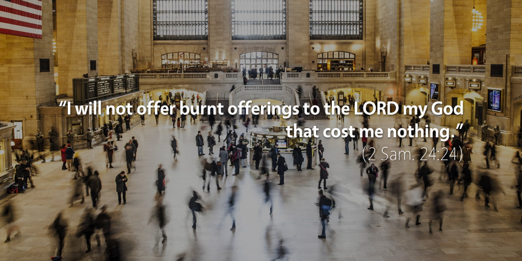 This verse comes from a story in the Old Testament where Orna, a Jebusite, is offering to David a piece of property, a threshing floor, as a gift for David to use as a place to build an altar on which to make a sacrifice to God. David shows his commitment to God by insisting that he pay for the property. He believed that the sacrifice was not complete unless it cost him something. So many of us who proclaim to be Christians have forgotten this mindset. Jesus paid the full price for our salvation and there is nothing that we can do to earn this. Thanks be to God for this. However our salvation came at a very expensive price and if we are to be sincere followers of Christ, we will be willing to respond out of love and gratitude with our own personal sacrifices, Lord, have mercy! Lord, have mercy! Lord, have mercy!