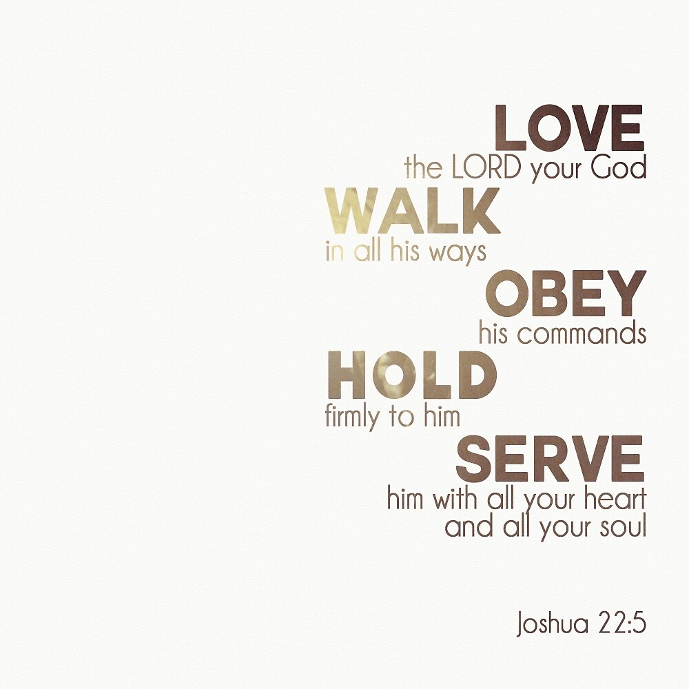 “But be very careful to do the commandments and the law which Moses the servant of the Lord commanded you to do, to love the Lord your God, to walk in all His ways, to keep His commandments, to adhere to Him, and to serve Him with all your mind and with all your soul.”